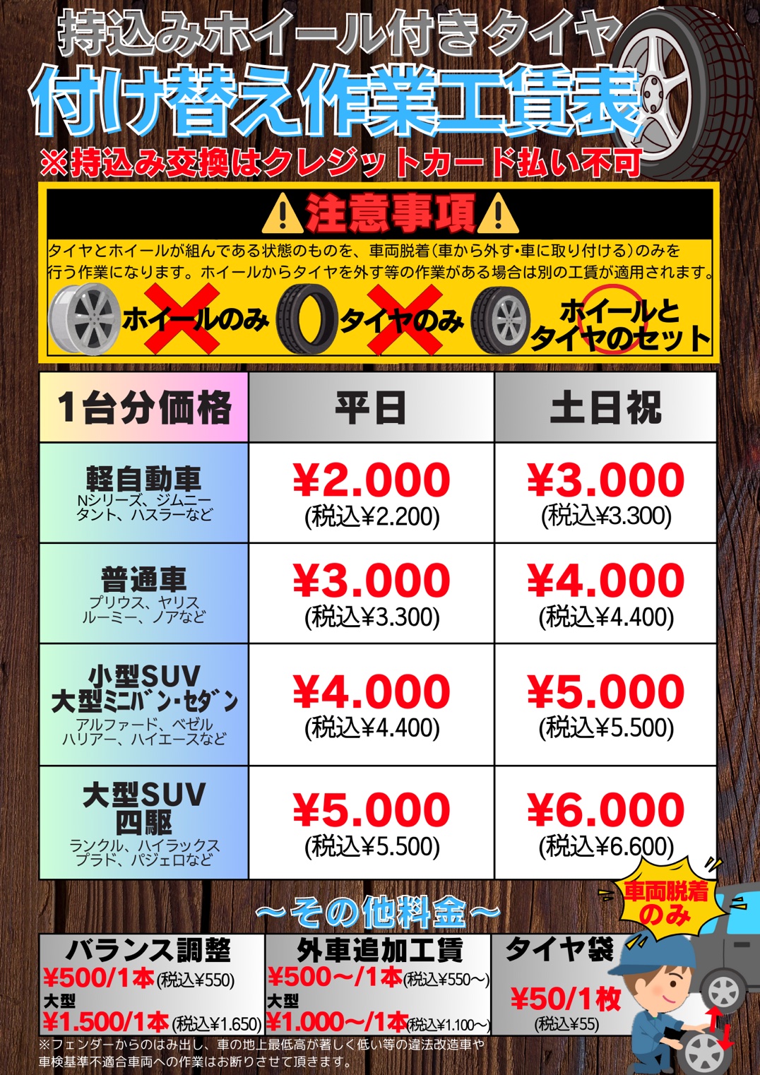 「気軽に持ち込みタイヤ交換を出来る店」ということで、遠方の方からも支持されているのですが、「激安工賃」は特に圧倒的にお客様に支持をいただいております。